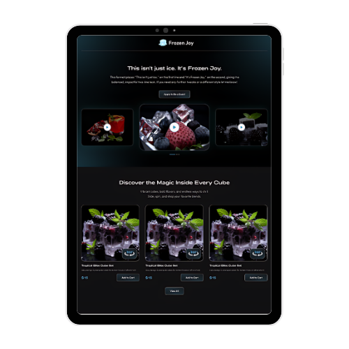 We built a flavor-first landing page that elevated Frozen Joy beyond ‘just ice cubes.’ Bold visuals, lifestyle-driven storytelling, and a streamlined checkout turned casual browsing into consistent sales.