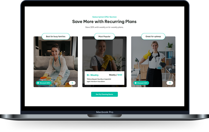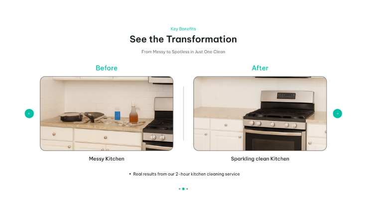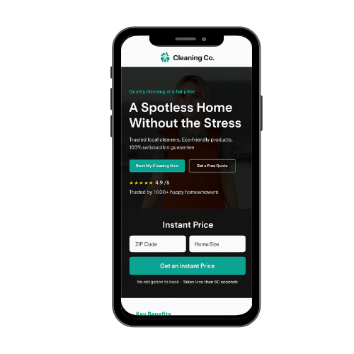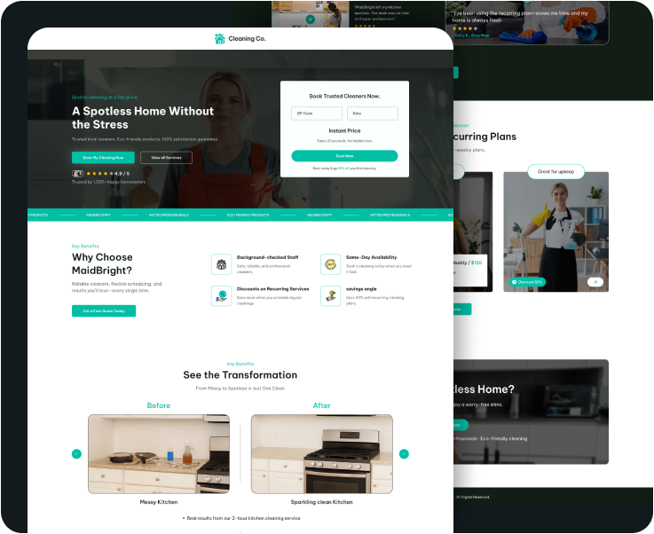 We designed a landing page that put recurring plans front and center, highlighted lifestyle benefits, and added trust-building elements like testimonials and guarantees. The new design reframes cleaning as a benefit (stress-free living) rather than a chore.