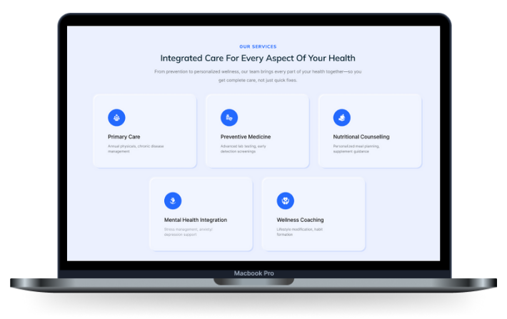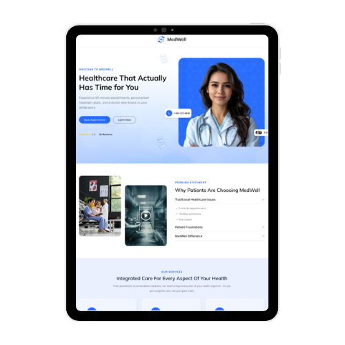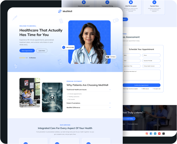 MedWell is a trusted clinic offering preventive and specialized care. Despite MedWell’s strong reputation, their old site leaned too heavily on patient quotes. Without clear services or proof of outcomes, visitors struggled to understand MedWell’s value, limiting appointment requests.